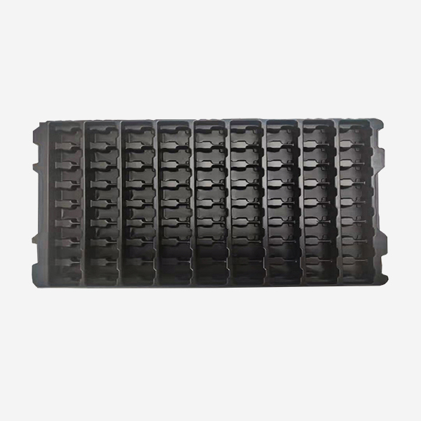 此产品为汽车元配件B包装,使用黑色抗导电材料,每层包装可放置72件零件。